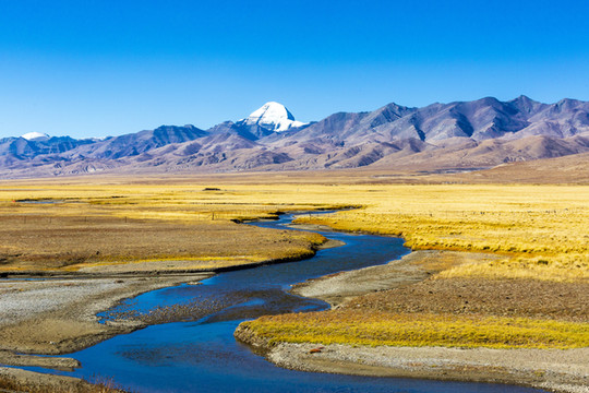 冈仁波齐山形独特,如同一座有着温柔曲线的金字塔,四季冰雪覆盖,耸立在高原之上,恬澹从容、王者风范!