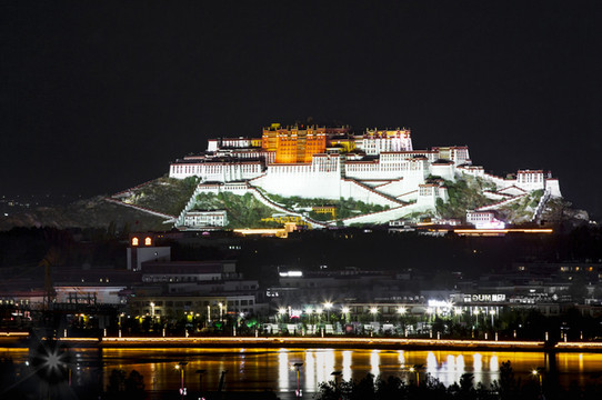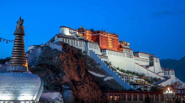 夜色中的布达拉宫,彷如漂浮在空中的宫殿