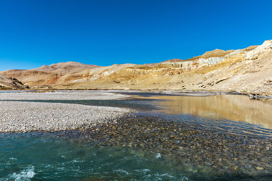 蜿蜒的象泉河水在土林峡谷中静静流淌,宛若置身于一个奇异的星球