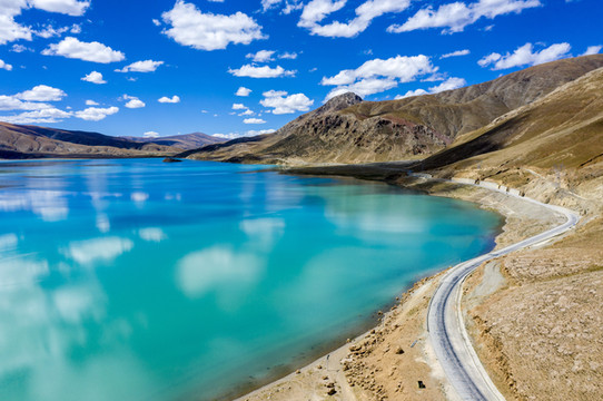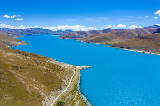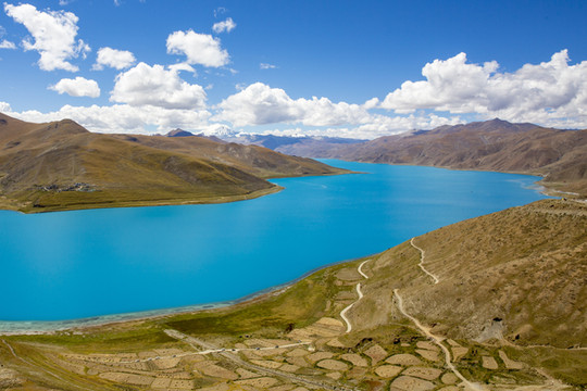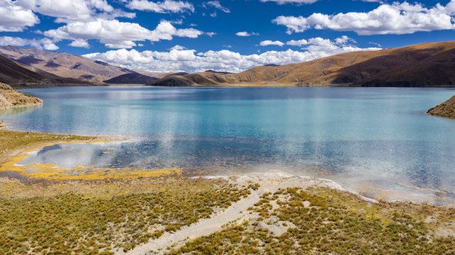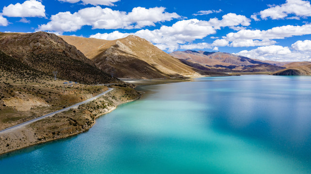 羊卓雍错,意为上部牧场的碧玉湖,与 纳木错 、玛旁雍错并称为藏地三大圣湖。一湾碧水犹如璀璨的蓝宝石,镶嵌于群山之间。