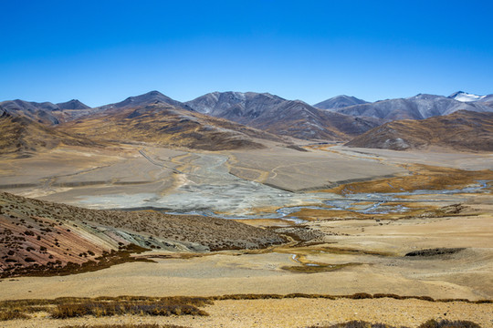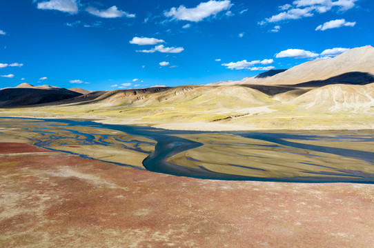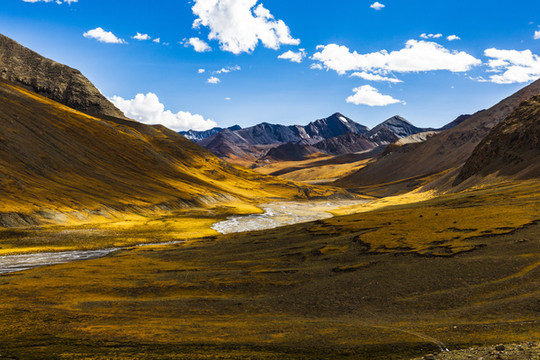 慢慢离开冈底斯山脉,进入昆仑山脉,景色变得不一样,名称也变了,垭口改称为“达坂”,少了一些苍凉,多了一些颜色,与前一段的风景截然不同,就像误入神仙的花园