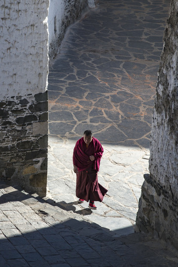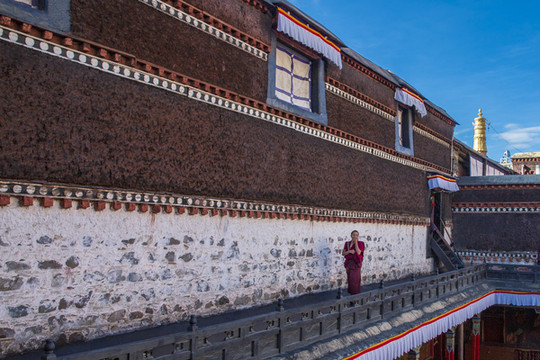 寺院内平和静谧,有800多位喇嘛常驻寺中修习,红衣僧人在红瓦白墙间穿行,他们在此敬佛诵经,在天地秩序中找寻到属于自己的道