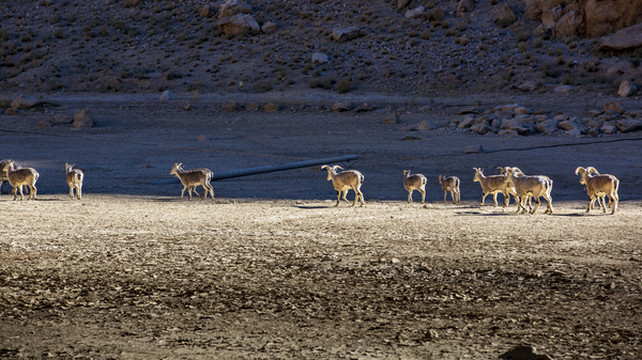 班公湖已经靠近边界,越往班公湖走,人越少,来旅游的人也不多,路上车很少。出门不久,就看见成群的黄羊和在峭壁上跳跃的藏原羚