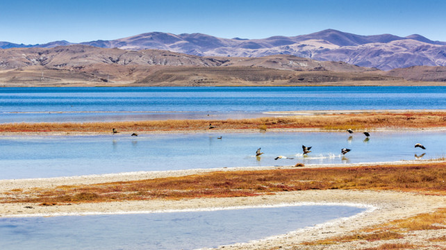 班公湖是一块净土、鸟的王国,湖中有十多个大小不等的岛屿,鸟的种类繁多,鸥鸟雁鸭欢舞飞翔、在蓝天碧水间徜徉,让人产生一种超然于尘世的感觉。