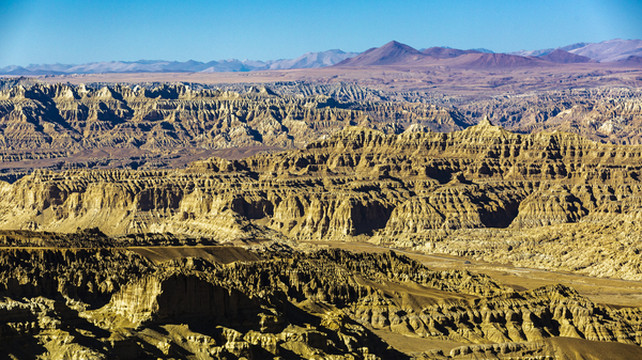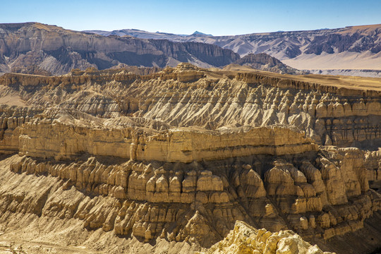 扎达土林面积达数百公里之阔,数十万年风雨的侵蚀,犹如神工鬼斧的雕琢打磨,使土林形状各异,神态不同,玲珑剔透,出神入化,像一座座城堡、一个个勇士、一层层宫殿。