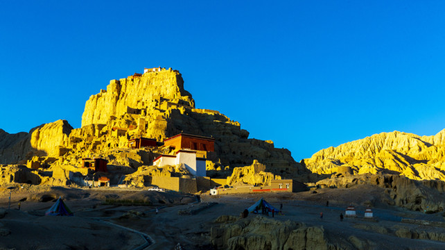 穹窿银城。历史上松赞干布统一西藏,建立吐蕃王朝。而在此之前的几千年,象雄王国是西藏高原雄霸一方的部落国家。曾经的象雄王国,主要在阿里地区,统治地区广袤,包括今天印度和巴基斯坦一些地区,都城就是琼隆银城。遗址藏在一个隐蔽的山谷,象泉河在山脚缓缓流过,人迹罕至。