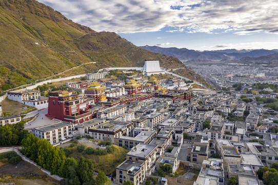 扎什伦布寺,班禅大师“驻锡地”,建于日喀则尼色日山坡上,由藏传佛教格鲁派创始人宗喀巴大师的弟子根敦珠巴创建,后经历代班禅不断扩建,逐步成为金碧辉煌、重楼叠宇的宏伟建筑,并成为后藏地区政治经济、文化和宗教的中心,与前藏地区的布达拉宫遥相呼应。