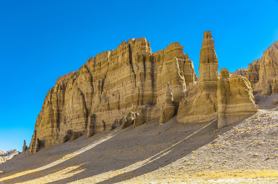 今天看见的土林在形态上和昨天有所差别,以孤立的土林为主,绵延数十里的扎达土林,就像置身于充满奇幻色彩的神话世界