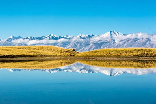 湖水深邃,雪峰俊逸,高耸的雪山与湖水连为一体,这份远离都市的超脱感,实在难以溢于言