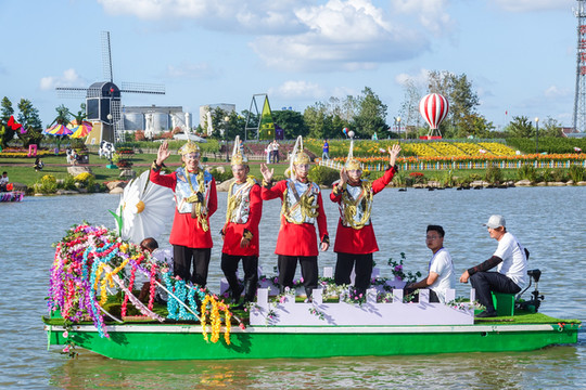 这次荷兰花海百合花文化节开幕,也是迎来了巡演的盛况。各色花车缓缓而来。