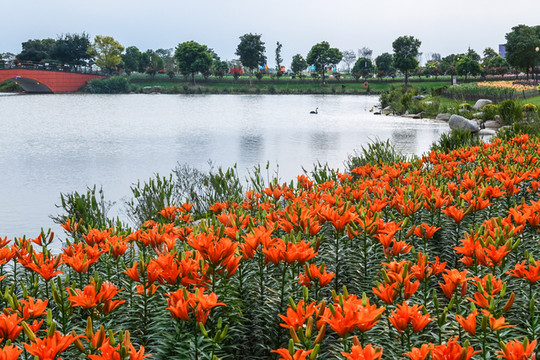 此时的荷兰花海在秋日暖阳下,或蜿蜒或簇拥铺,满花海。万花丛中,高贵的百合应景怒放,或白或淡粉或黄或橘或红,花团锦簇,迎风轻舞。