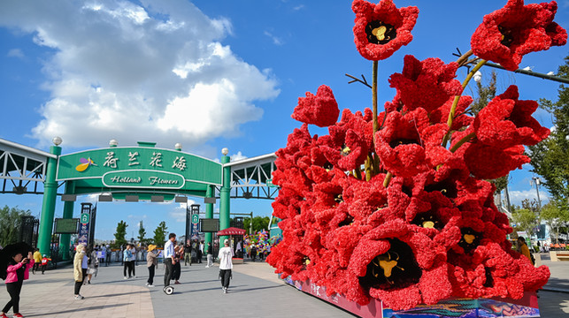 荷兰花海是一座按照荷兰风情来打造的景区小镇,春天的郁金香,秋天的百合花,木屋,花海,教堂,羊角村餐厅,景区外的荷兰风情街,到处都洋溢着异国情调。