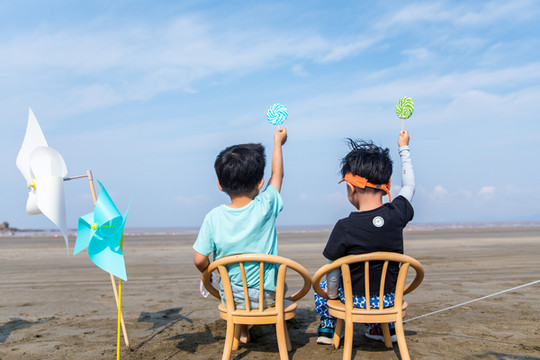 开吃的地点也很有讲究。既然在海边,就要有大海沙滩蓝天的感觉,带孩子的妈妈才有实现麦兜向往的成就感——世外桃源,蓝天白云,椰林树影,水清沙幼。这个地地方叫鹿栏晴沙,离锦上云宿不远,是整个舟山群岛上最大的沙滩,因沙质较硬,可以肆意奔跑;海边风大,放风筝超棒。